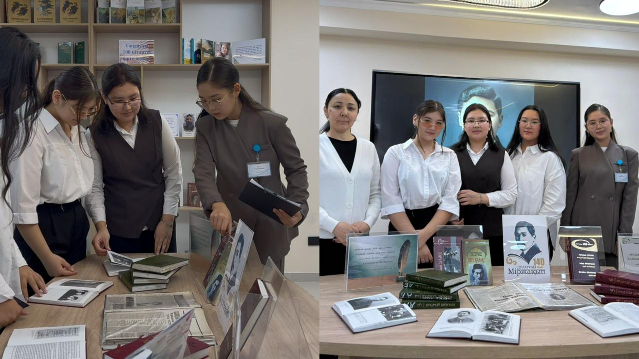 Шара соңында кітапхана қорынан дайындалған кітап көрмесіне шолу жүргізіліп, Міржақып Дулатовтың шығармалары таныстырылды.