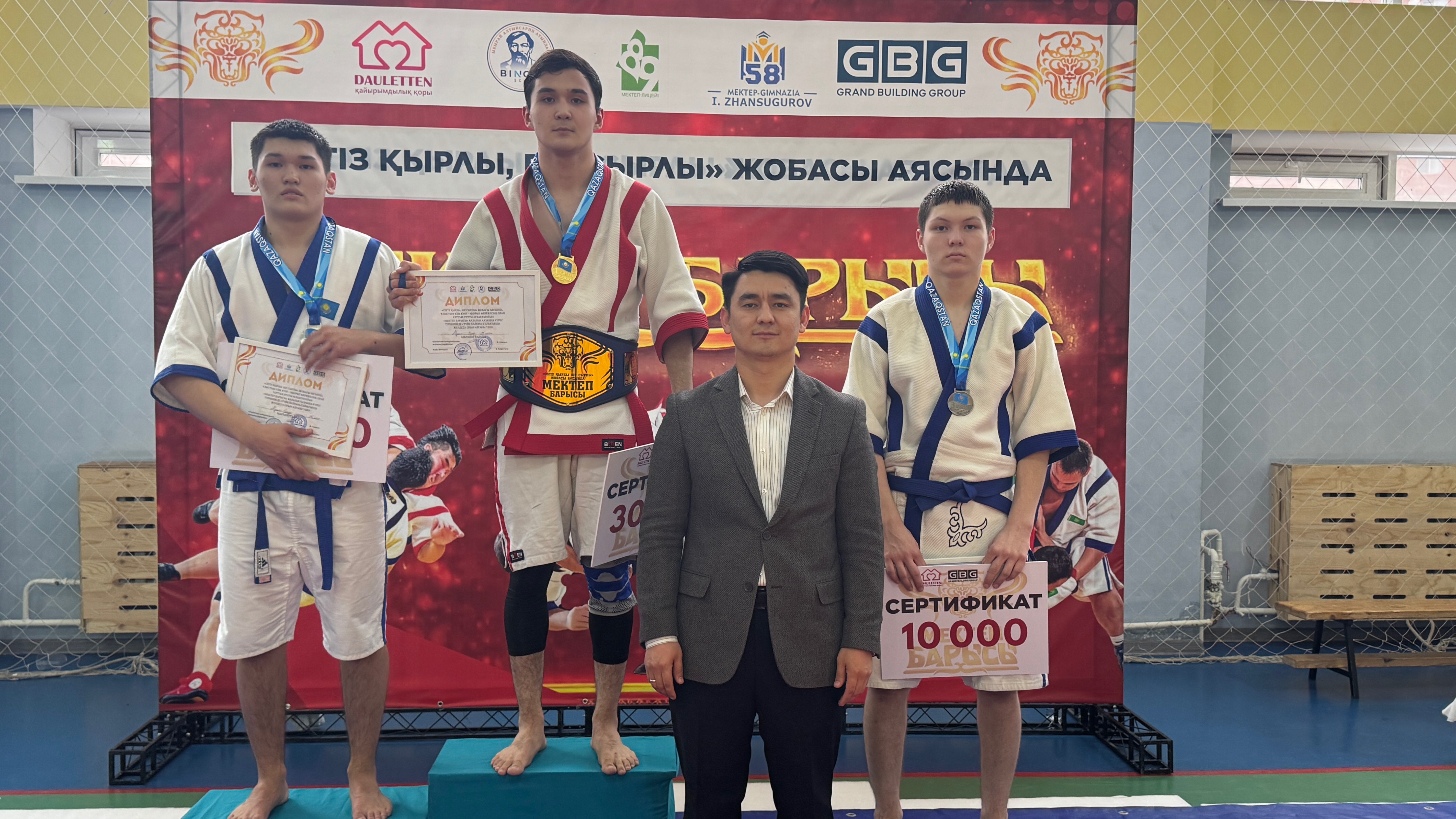 «GBG Құрылыс» компаниясы жеңімпаздар мен жүлдегерлерді ақшалай сыйлықтармен және арнайы белбеулермен марапаттады. І орын иегерлеріне 30 000 теңге мен арнайы белбеу табысталса, ІІ орынға — 20 000 теңге, ал ІІІ орынға — 10 000 теңге берілді.