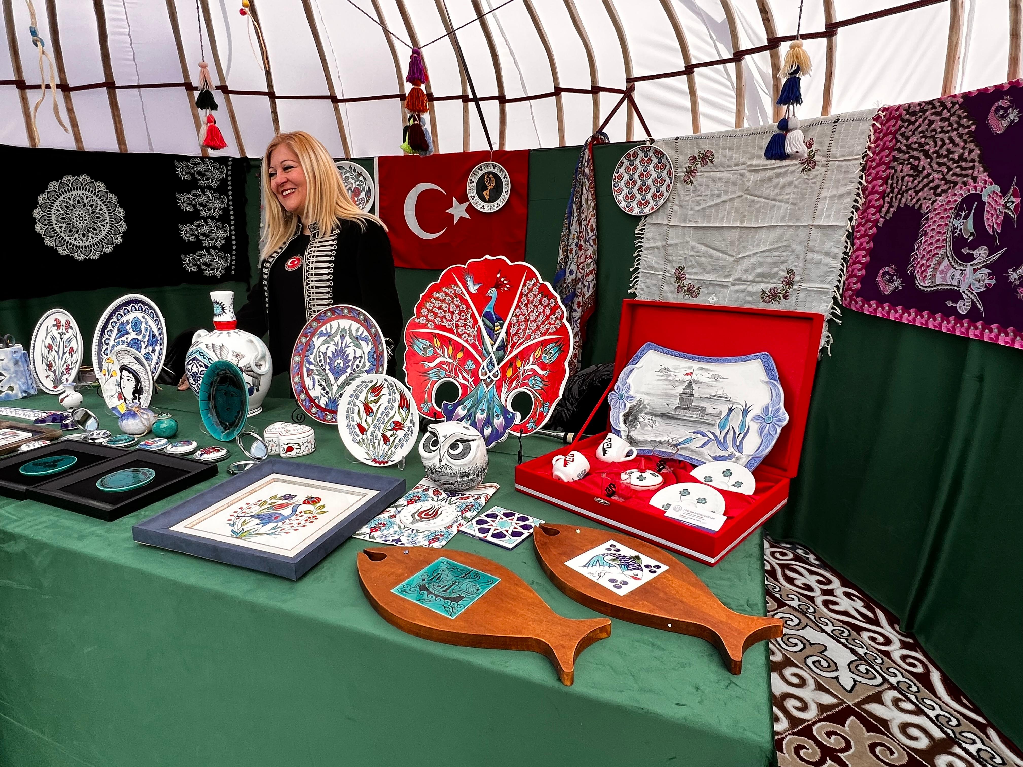 Көрме алаңында Қырғызстан, Түркия, Өзбекстан мен Тәжікстаннан келген халық шеберлері мен қолөнершілердің бұйымдары ұсынылған. Келушілер түркі халықтарының ұлттық дәстүрі, мәдениеті мен сәндік-қолданбалы өнерімен танысып, тоқыма өнімінен бастап әшекейлер, кәдесыйлар мен тұрмыстық заттарға дейінгі ерекше қолөнер туындысын сатып ала алады.