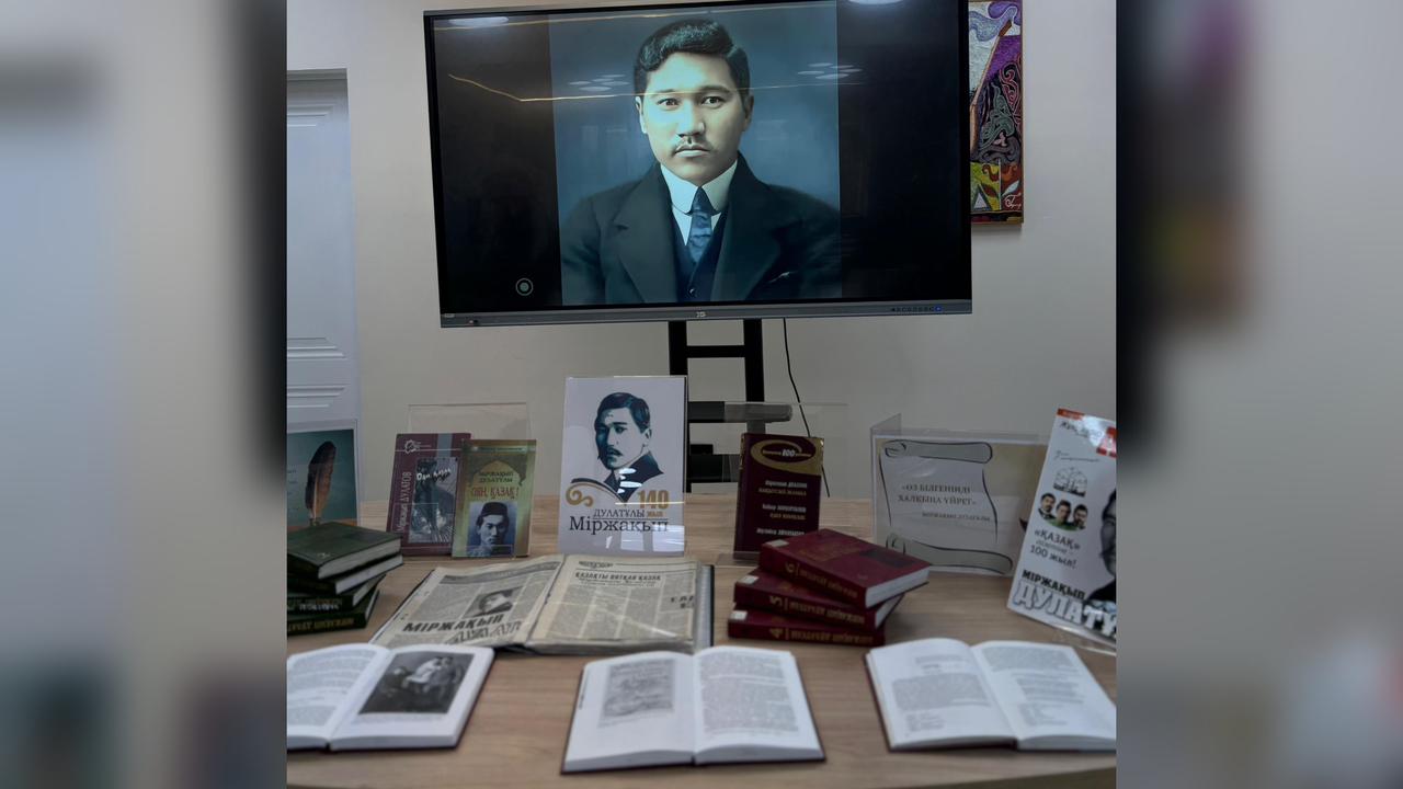 Шара соңында кітапхана қорынан дайындалған кітап көрмесіне шолу жүргізіліп, Міржақып Дулатовтың шығармалары таныстырылды.