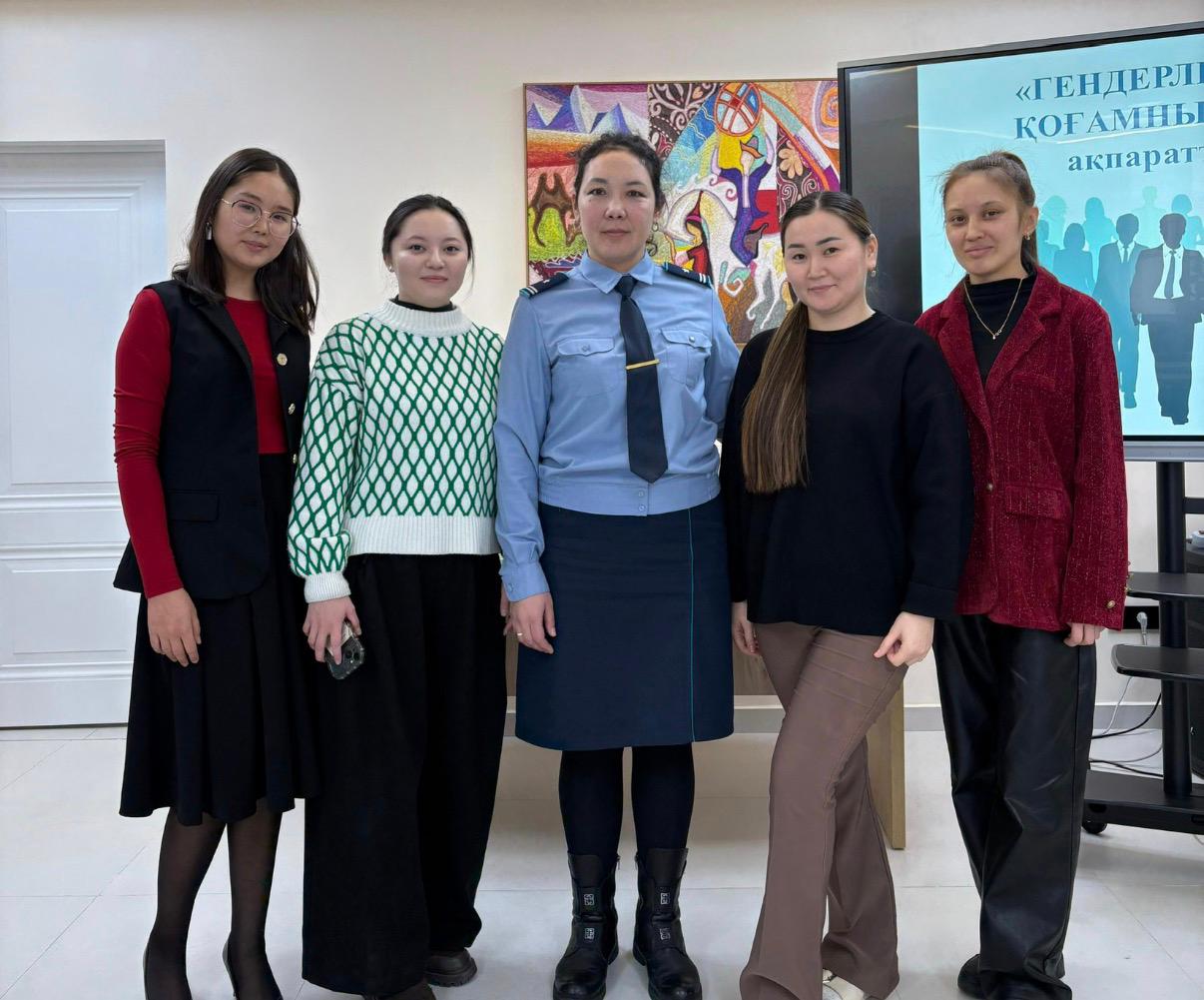 Астана қаласында Мұхтар Әуезов атындағы қалалық кітапханада “Гендерлік саясат, қоғамның теңдігі” тақырыбында мазмұнды әрі тағылымы мол ақпараттық сағат өтті. Іс-шараның басты мақсаты – жас ұрпақтың гендерлік теңдік, әйелдердің қоғамдағы рөлі, құқық қорғау органдарындағы әйел мамандардың қызметі туралы түсінігін кеңейту, азаматтық сана мен әлеуметтік жауапкершілікті қалыптастыру болды, – деп хабарлайды Dauletten.kz.